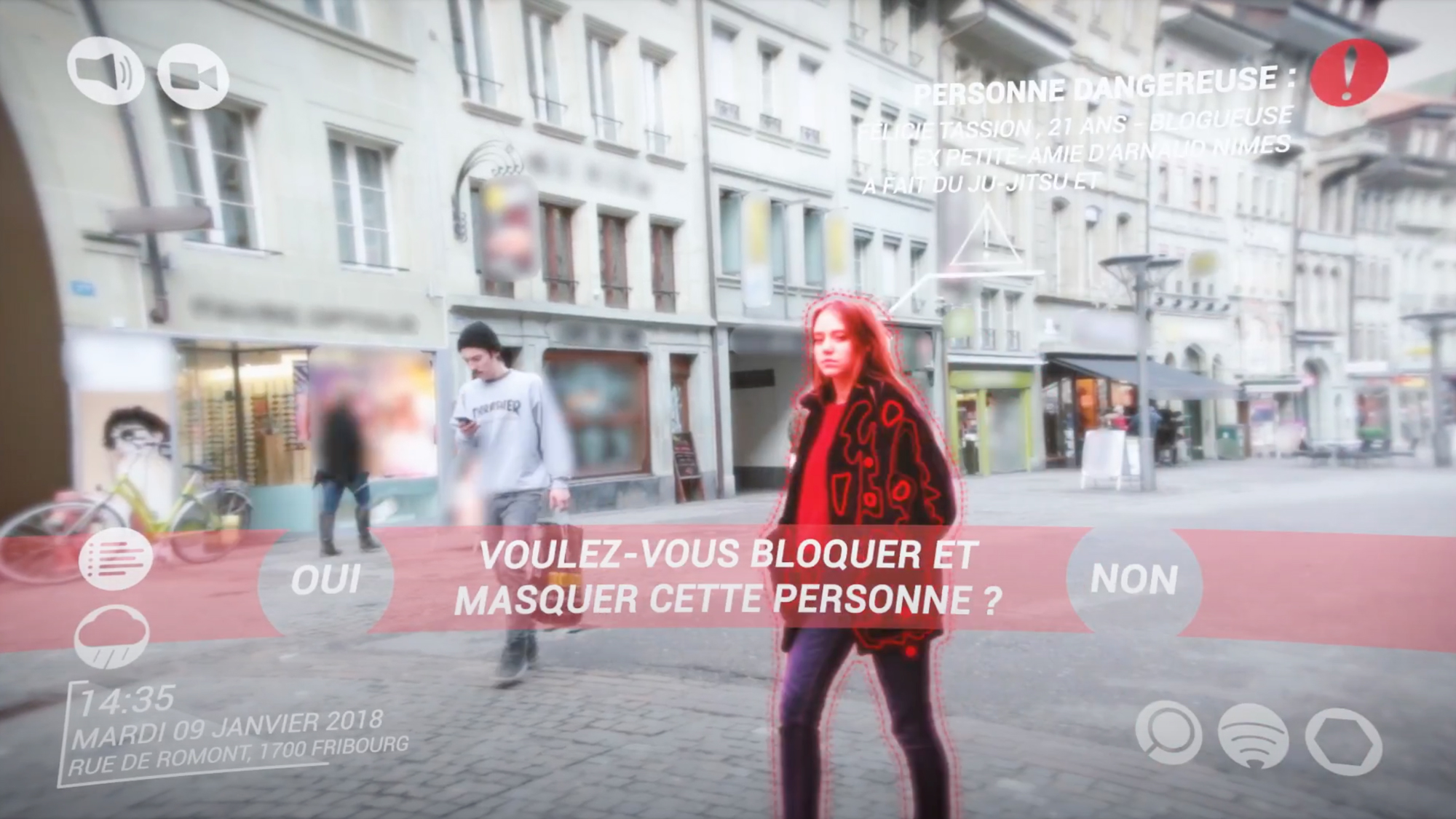 For this project, we were commissioned to produce a sequence where the objective is to simulate advertisements in augmented reality. We had to imagine ourselves in a future where augmented reality lenses would have replaced our mobile phones and, therefore, ask ourselves the question: "How current advertising would adapt to this technology?".