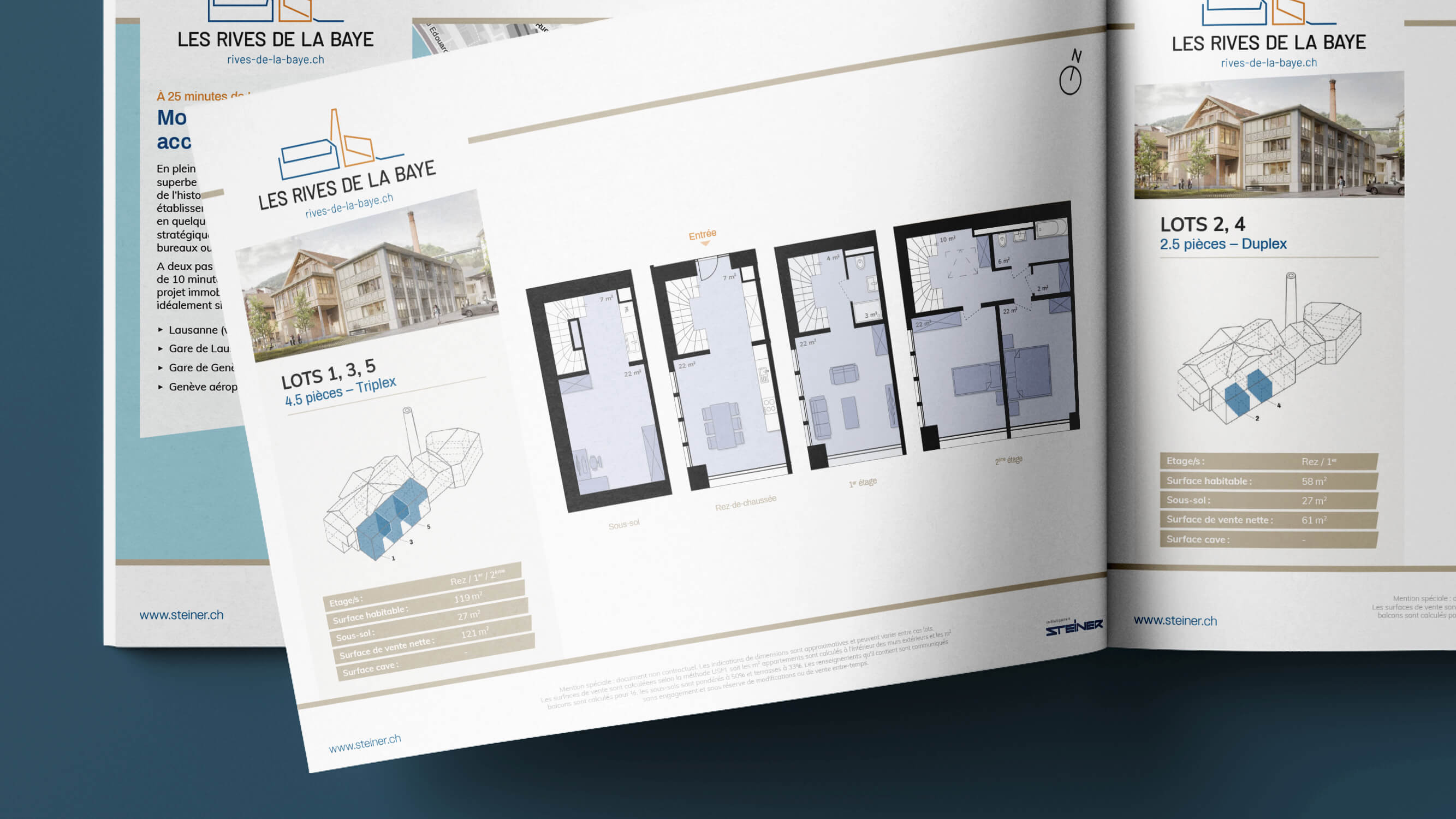 In order to promote the project, I was asked to imagine a logo as well as a visual identity. Once these elements had been completed and validated, I was responsible for producing the promotional brochure for the real estate project, ranging from the layout to the 2D and 3D plans. I also took care of the website design.